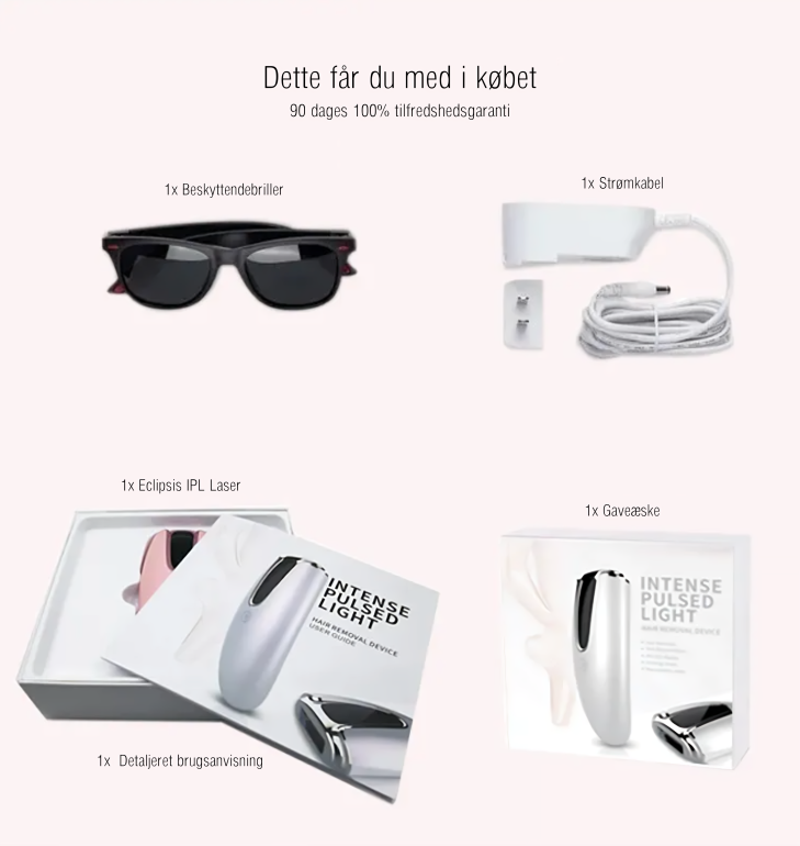 Eclipsis IPL er certificeret og sikker, så du kan være tryg ved kvaliteten af vores produkter. Vær opmærksom på, at vores produkt kun er tilgængeligt online!