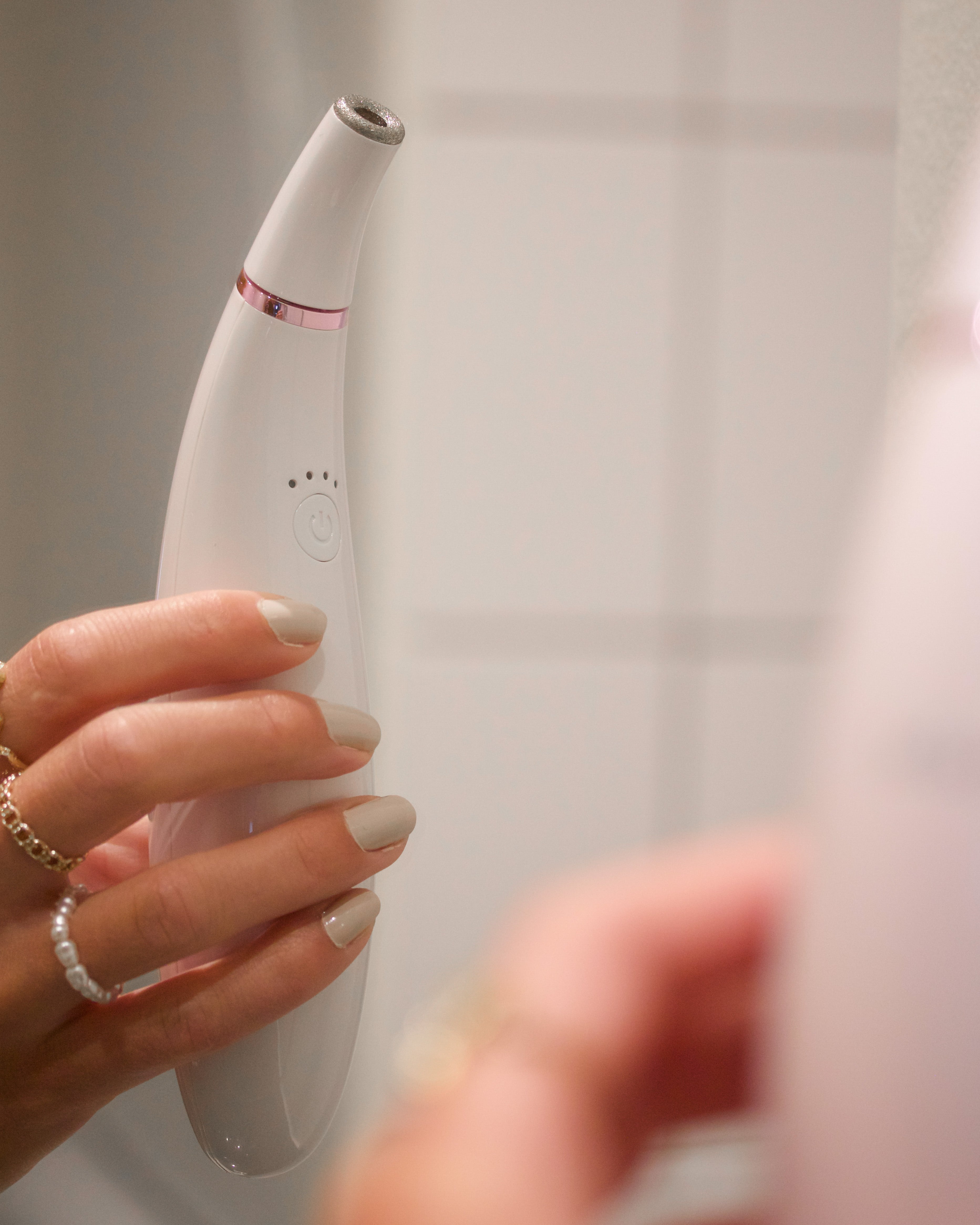 MikroDerm kombinerer den skånsomme eksfolierende kraft fra mikrokrystaller og en effektiv sugemekanisme, der forbedrer hudens tekstur og giver en glattere overflade.